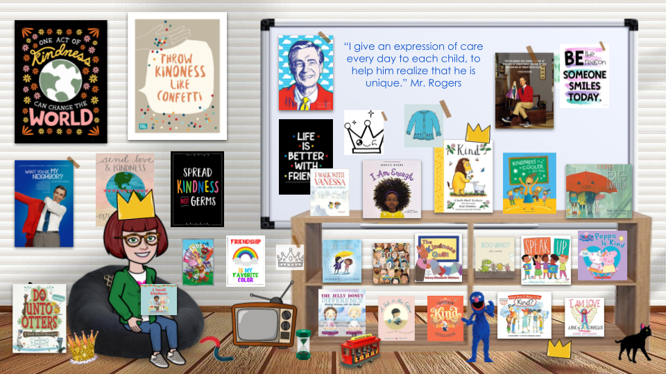 This year for kindness day, 11.13.21, our campus is celebrating by wearing cardigans for Mr. Rogers. Crowns 👑 have been added because we are in Texas and can’t always wear a sweater in November. In fact- finding a cardigan for my kids wasn’t the easiest! We will be reading books, creating crowns, and finding ways to use google tools to create. To edit the room below, visit https://bit.ly/bgbscrowns and make a copy. The bitmoji is also linked, so check out the link before replacing with your own bitmoji.