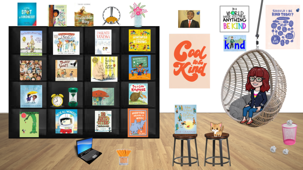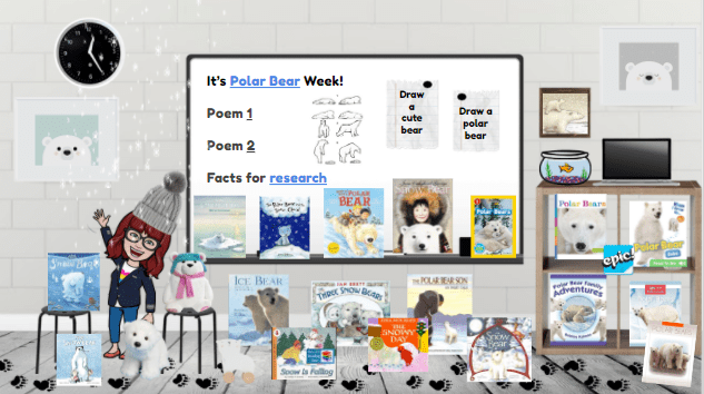 As a librarian I have collected read alouds and online activities in a variety of ways- if I told you I once used Netscape would that date me? A lot? No matter your opinion of the bitmoji trend you have to at least check out the great virtual classrooms available for teachers by teachers on twitter, facebook, and instagram. Most are totally free because teachers love to share. My bitmoji rooms and choice boards are available for you to copy and make your own, just click on the bitmoji tag, save my linktree or preview some below. There are lots of free resources available on the web for classroom backgrounds and items you can add!