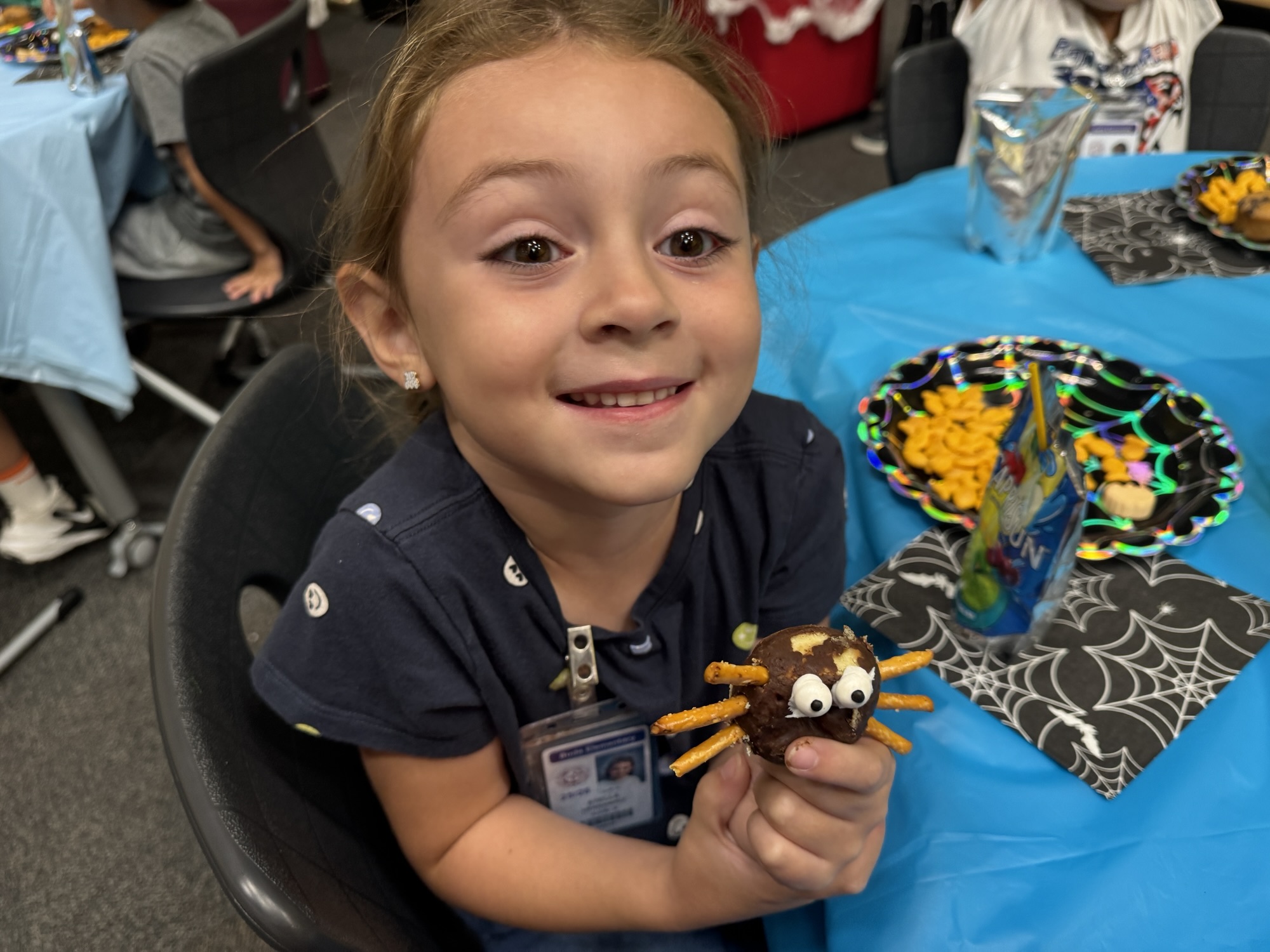 Spiders Aren’t Spooky if you celebrate with Miss Spider’s Tea Party. In October, we use my spider bitroom to explore both fiction and nonfiction titles about spiders. We culminate our spider reading with a tea party just like Miss Spider! Parents helped us by donating treats and we created mini-donut spiders (edible eyeballs are a hit).