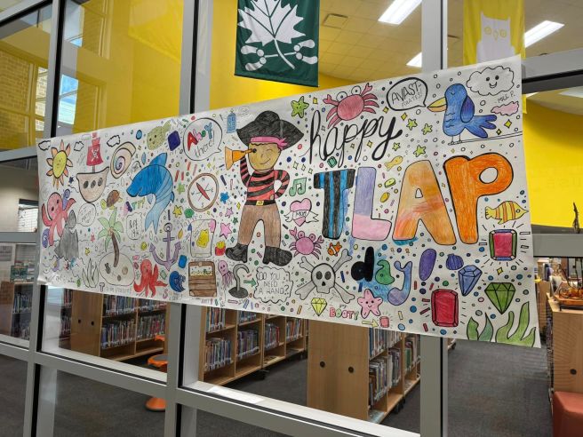 We hung pirate flags and challenged the staff to dress as a pirate for TLAP Day, with the winners earning book fair credit from our upcoming Book Fair. The coloring mural I drew was finally ready to hang the day before TLAP Day, so it made a nice photo backdrop. I sure am glad I keep that pirate hat in storage, but I had to buy new pirate teeth and I can’t find my hand hook! Can’t wait for next year’s version!
