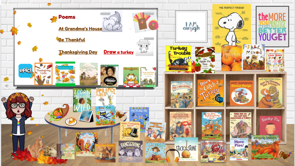 Still loving these Bitmoji-themed libraries because they allow me to share some great reads and activities in a theme (I adore a theme). This Thanksgiving and friendship themed room has a vrspot link for the YouTube videos because that is helpful for most of the teacher friends that use these. To make a copy and edit as you like click here. To view the slide in presentation mode use https://bit.ly/bgbsthanks23