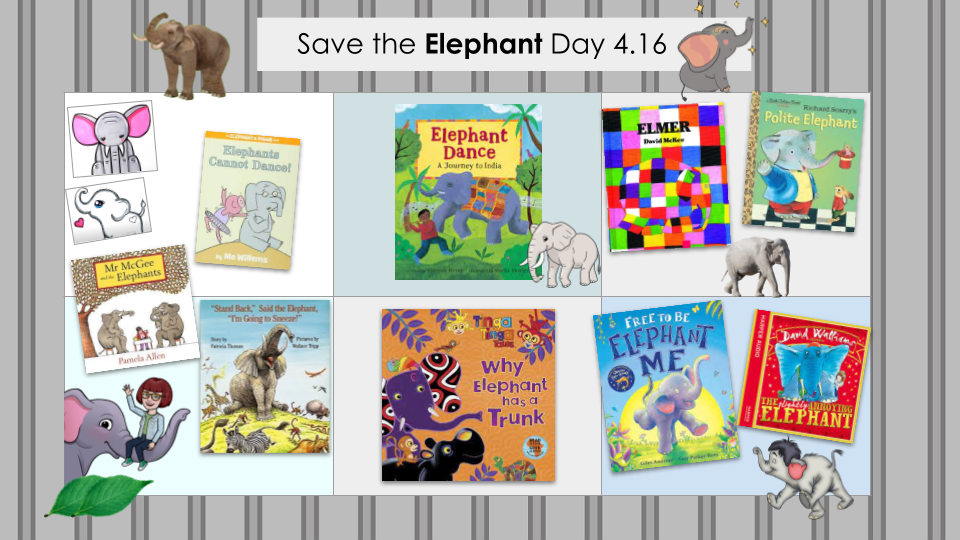 Celebrating elephants with fiction, non-fiction and a dose of Peppa! Make a copy of the slide and edit as you like: https://bit.ly/bgbsele
